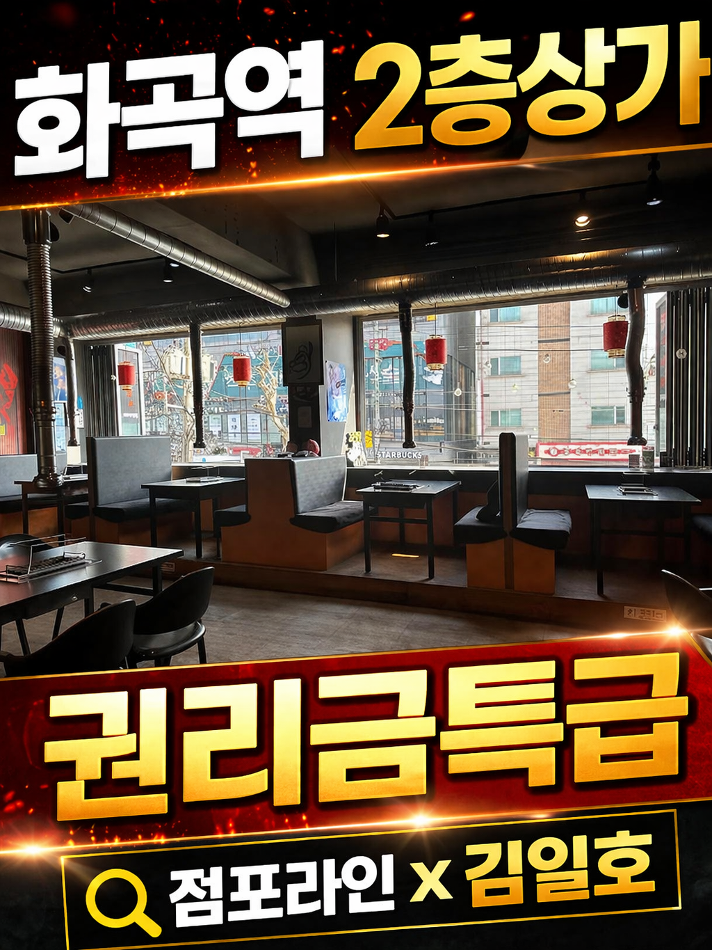화곡역 7번 출구 도보 100m라는 입지는 '설명할 필요가 없는' 핵심 요지입니다. 하지만 2층이라는 위치는 일반적인 창업자들에게 고민거리가 되곤 합니다.