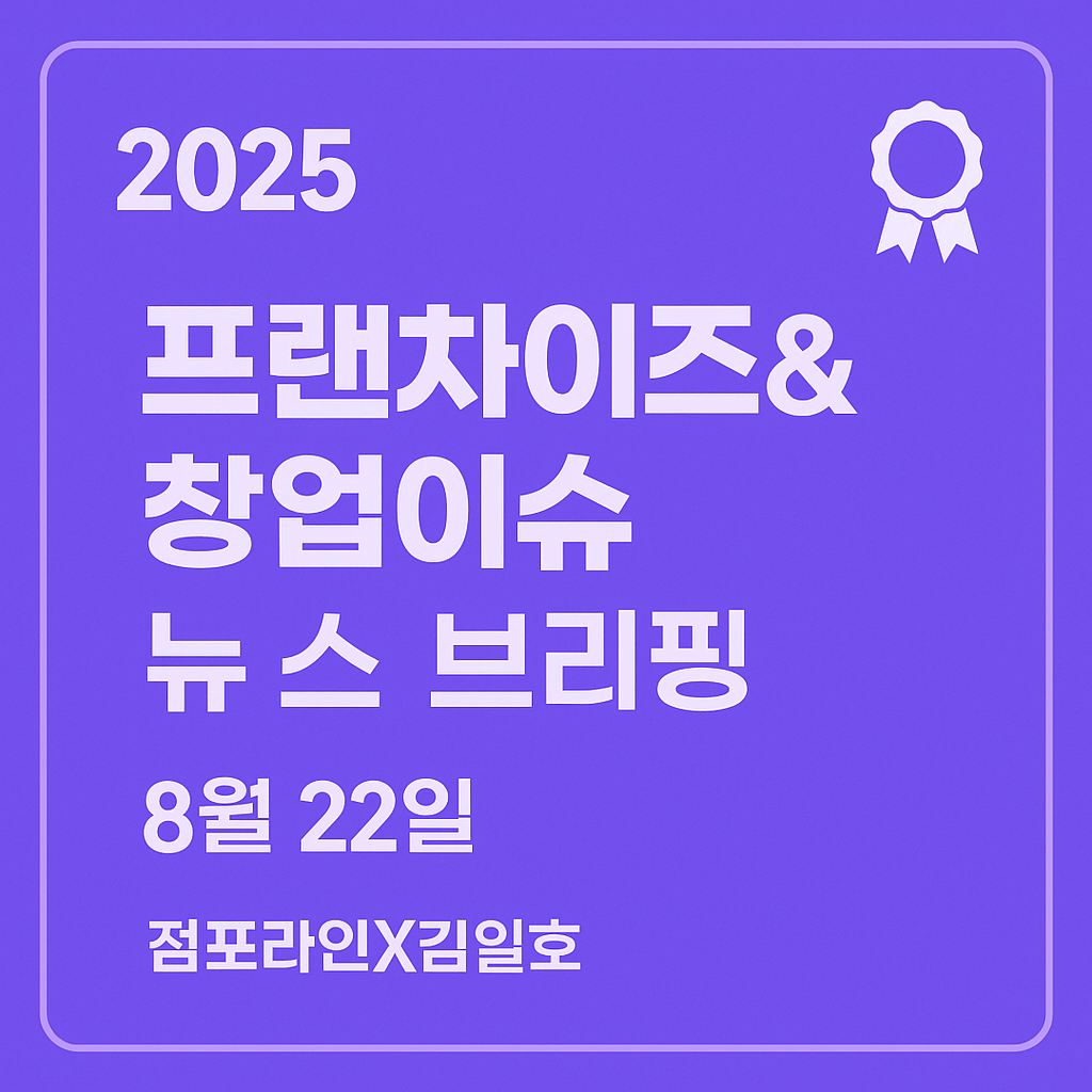 2025년 8월 22일 프랜차이즈 & 창업 시장 뉴스 브리핑프랜차이즈와 창업 시장에서 오늘 주목해야 할 뉴스 10선을 아래처럼 정리했습니다. 예비 창업자, 업계 관계자, 전략 담당자 모두에게 유익한 정보가 가득합니다.주요 뉴스 TOP 10“K‑프랜차이즈 미국 투자 설명회 개최”한국프랜차이즈산업협회 미국 지회 주최로 **“제8회 K‑프랜차이즈 미국 투자 설명회”**를 8월 22일 미국 부에나팍에서 개최합니다. 창업 전략, 현지 계약, 지원 프로그램 등 실전 정보가 공유됩니다. “올 하반기 IFS 프랜차이즈 박람회, 1:1 비즈매칭 안내”한국프랜차이즈산업협회가 안내한 내용에 따르면, 8월 하반기 IFS 프랜차이즈 창업·산업 박람회에 1:1 비즈매칭 프로그램이 운영됩니다.“IFS 박람회, 국내 최대 규모 35..